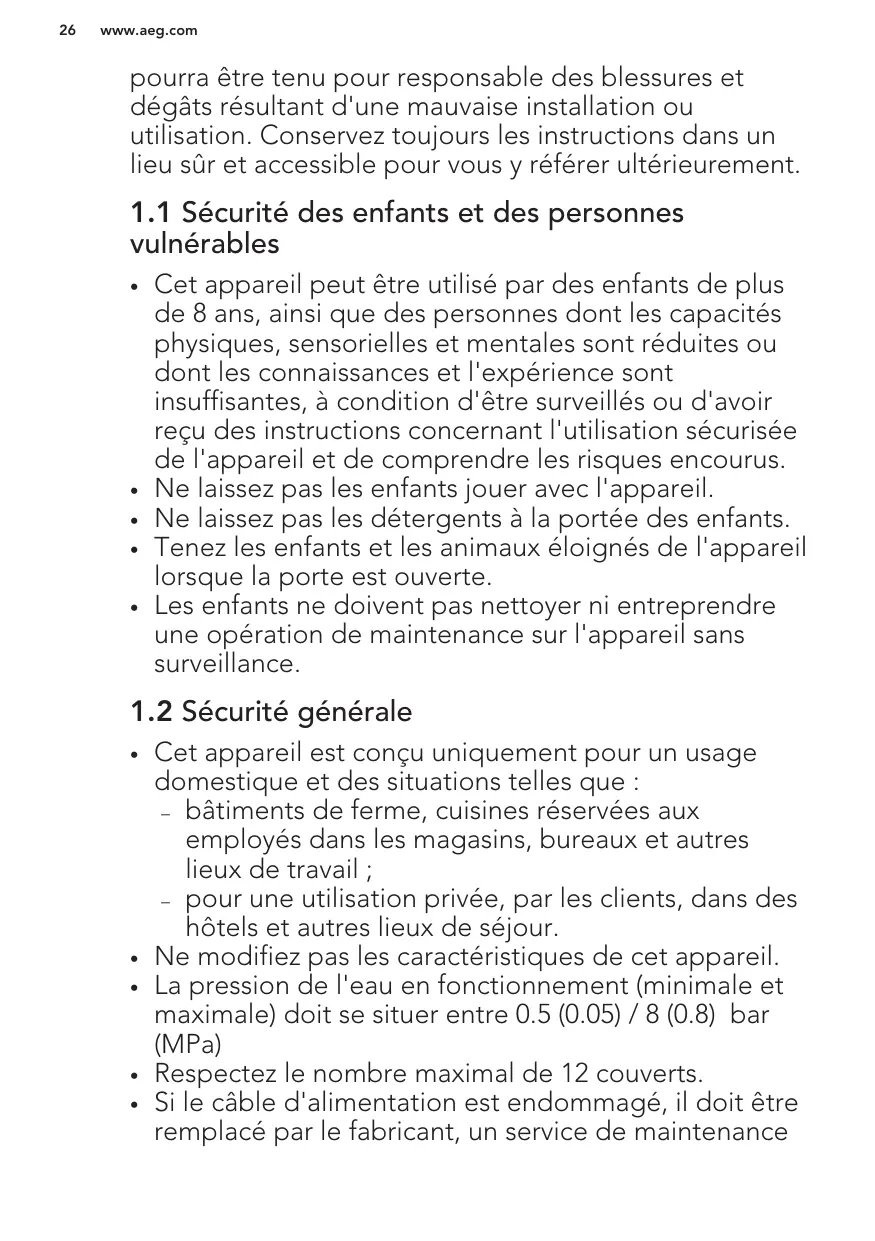 www.aeg.com pourra être tenu pour responsable des blessures et dégâts résultant d'une mauvaise installation ou utilisation. Conservez toujours les instructions dans un lieu sûr et accessible pour vous y référer ultérieurement.
