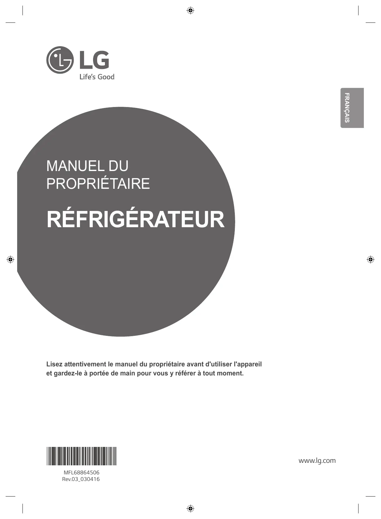 Lisez attentivement le manuel du propriétaire avant d'utiliser l'appareil et gardez-le à portée de main pour vous y référer à tout moment.