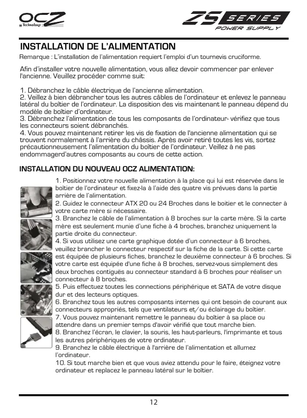 MODE D'EMPLOI ZS SERIES 550WATT 80PLUS BRONZE OCZ