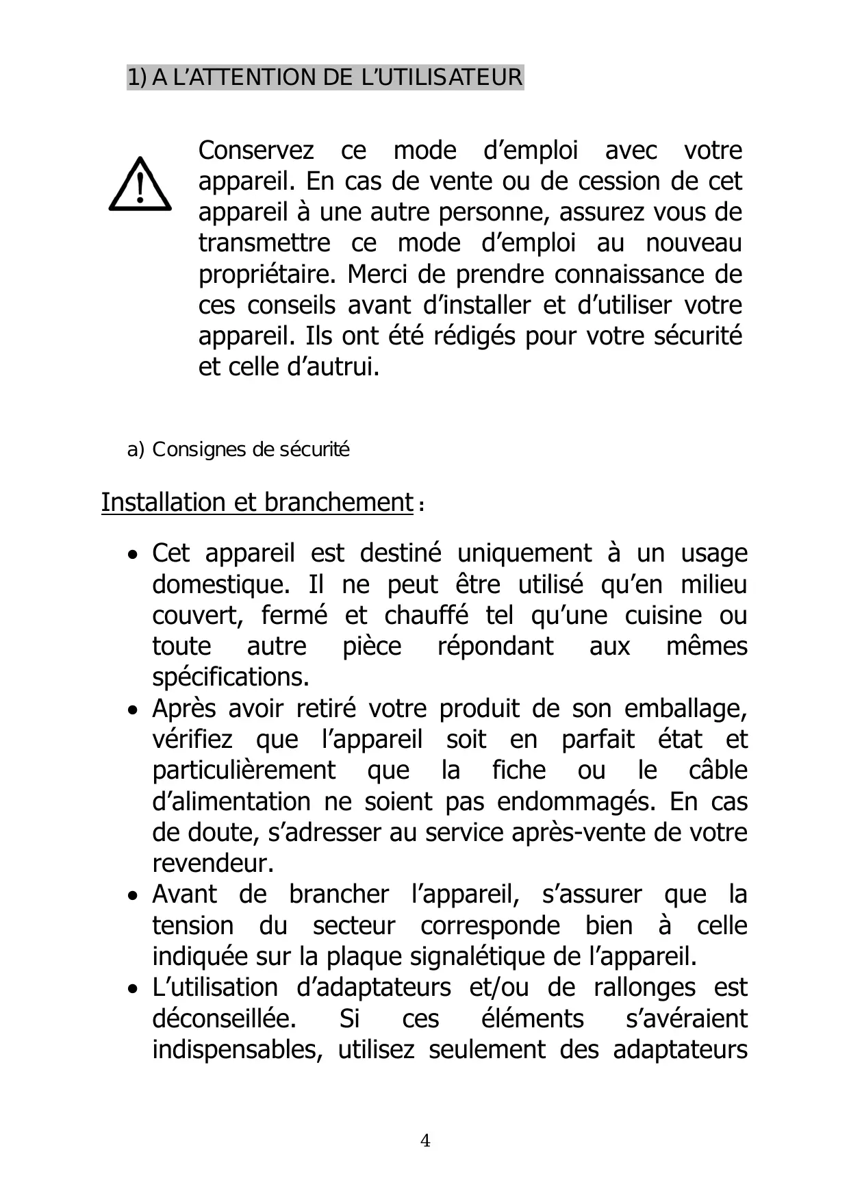 a) Consignes de sécurité 4