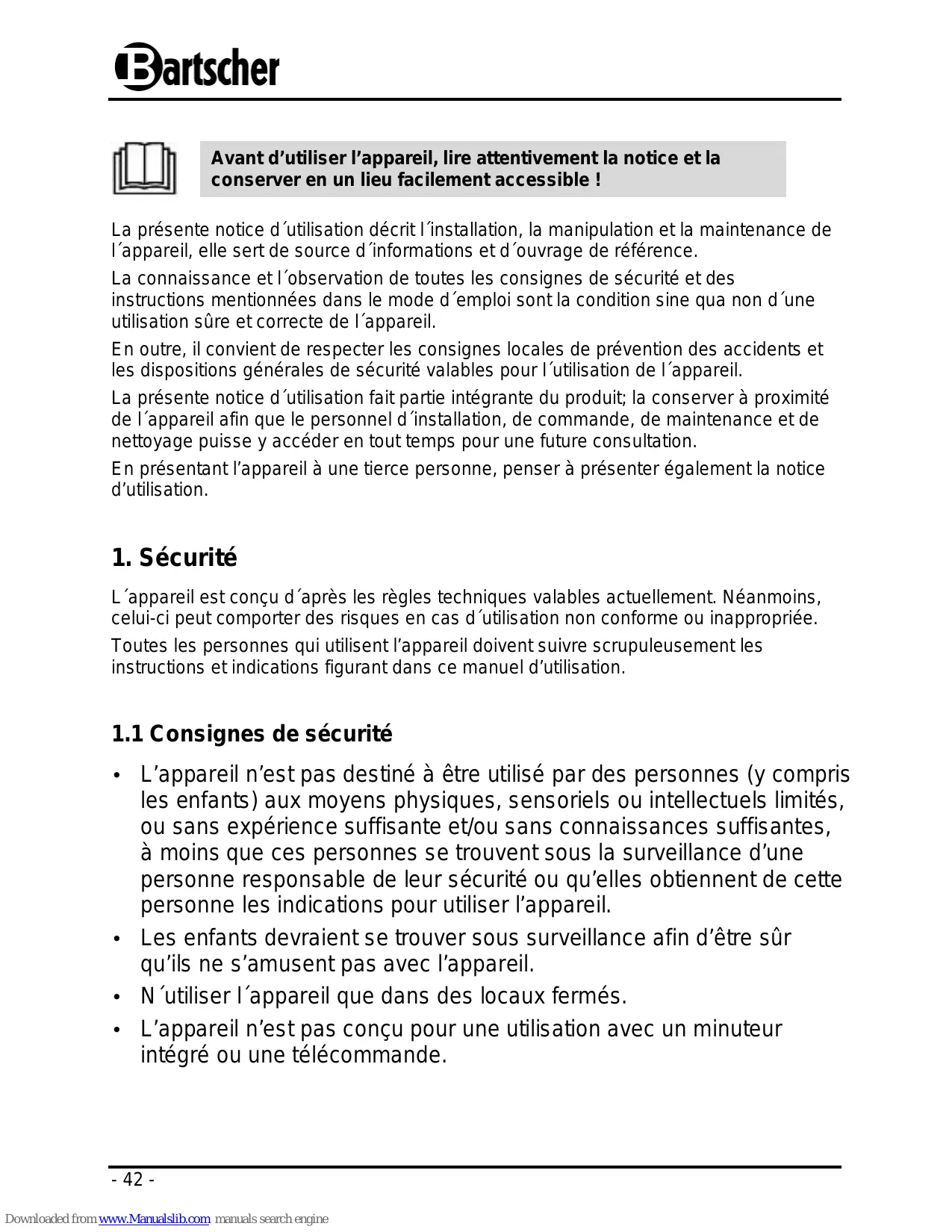 Retrouvez gratuitement la notice de l'appareil 700965 BARTSCHER au format PDF.