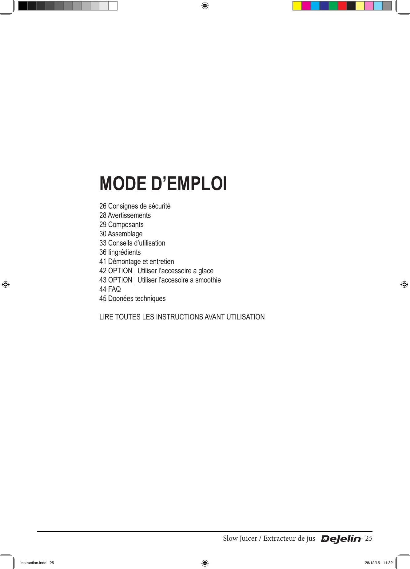 SLJ100 - Extracteur de jus DEJELIN - Notice d'utilisation et mode d'emploi gratuit