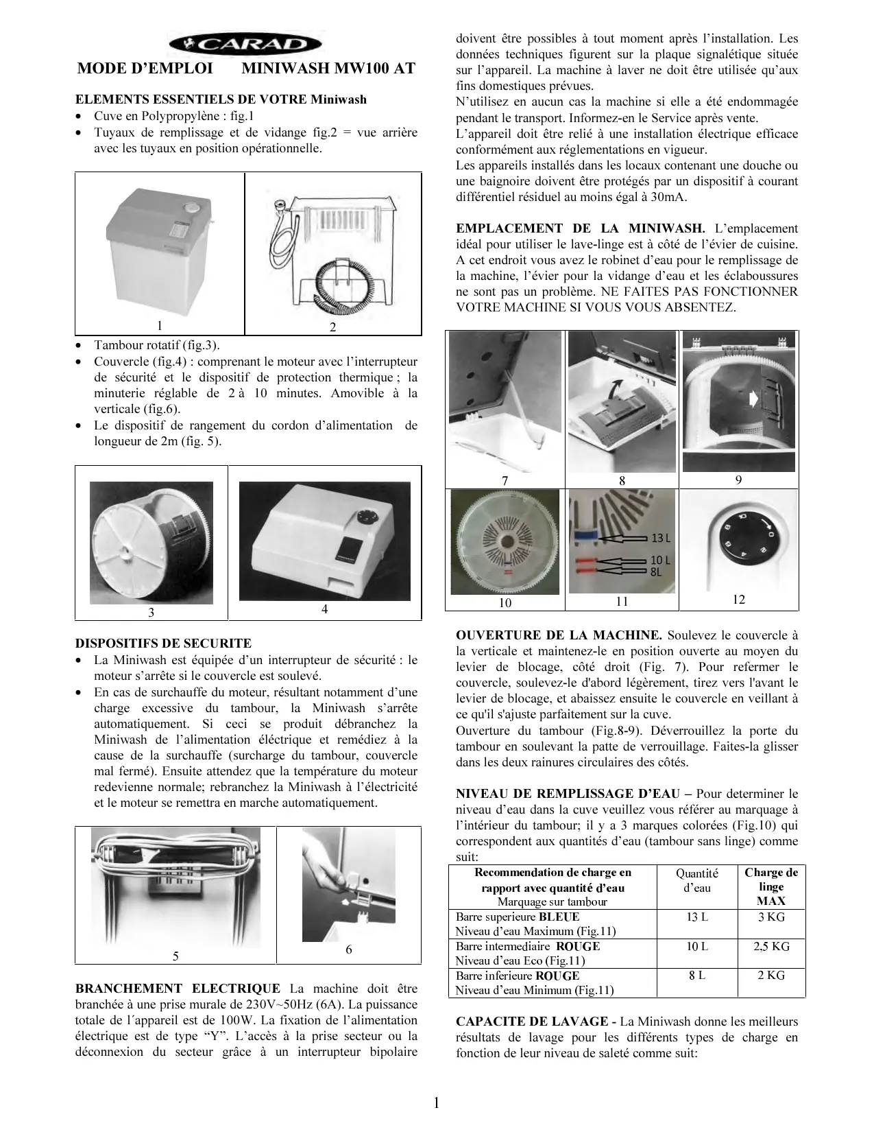Retrouvez gratuitement la notice de l'appareil MW100 CARAD au format PDF.