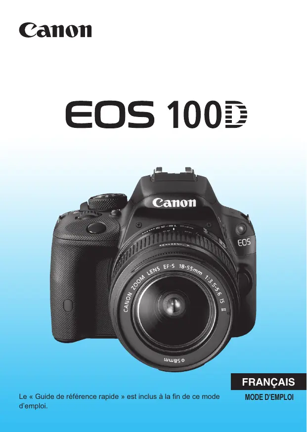 Toutes les opérations décrites dans ce mode d’emploi supposent que le commutateur d’alimentation est sur <1> (p. 35). Il est supposé que tous les réglages du menu et les fonctions personnalisées sont définis par défaut. Les illustrations de ce mode d’emploi prennent comme exemple l’appareil photo équipé de l’objectif EF-S 18-55 mm f/3,5-5,6 IS II.