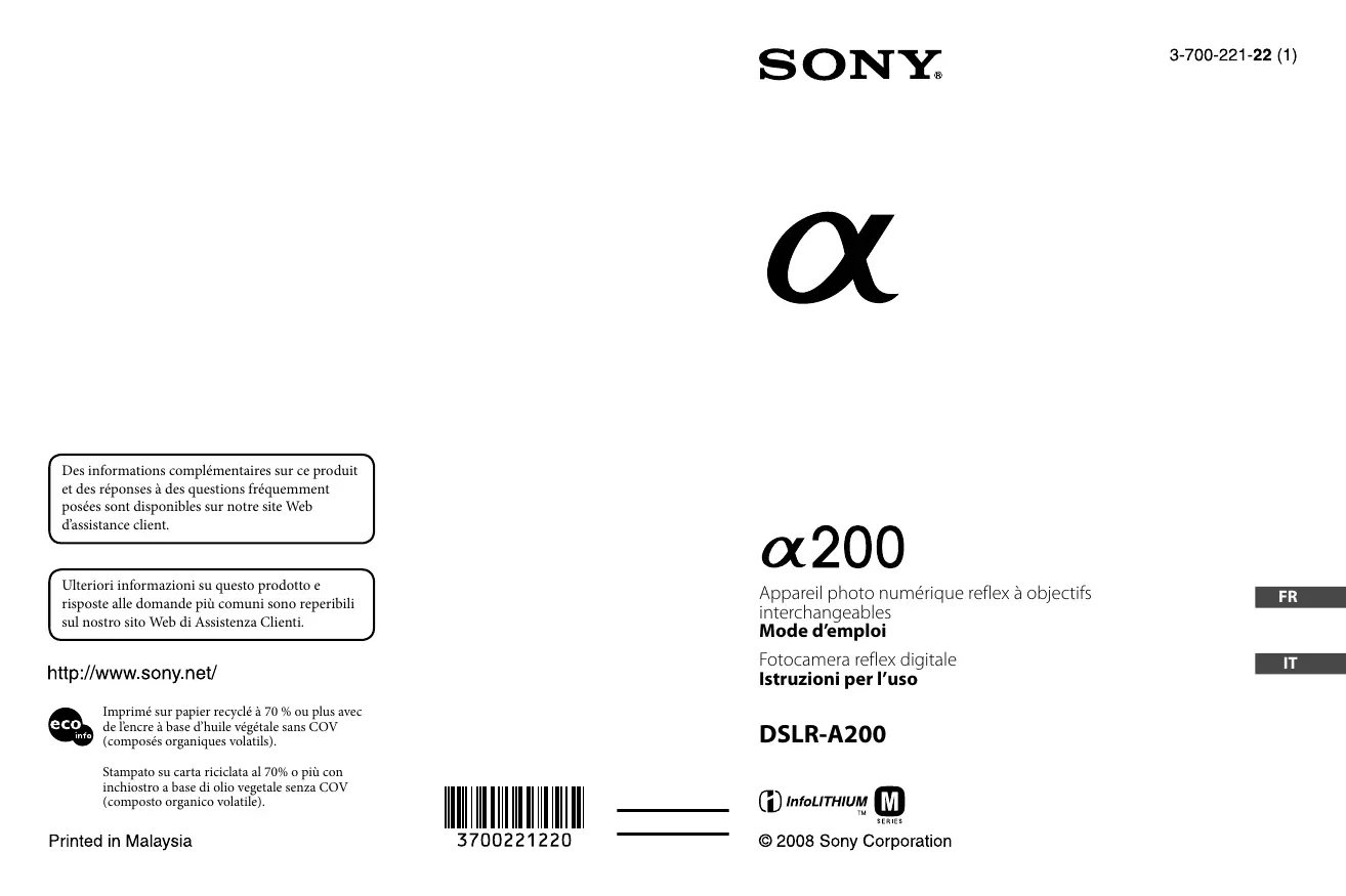 Téléchargez la notice de votre Appareil photo reflex numérique au format PDF gratuitement ! Retrouvez votre notice A380 - SONY et reprennez votre appareil électronique en main. Sur cette page sont publiés tous les documents nécessaires à l'utilisation de votre appareil A380 de la marque SONY.