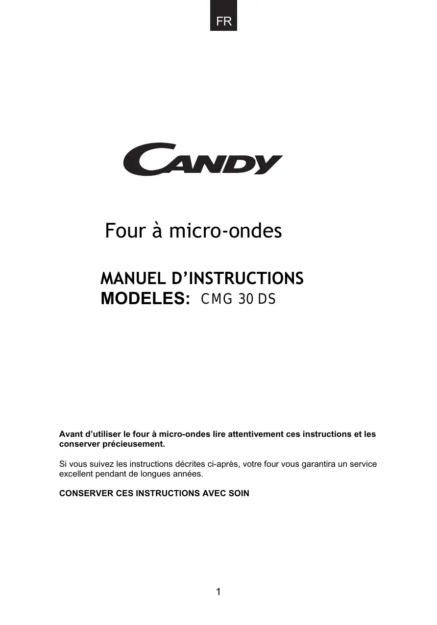 CMXW 20 DS - Micro-ondes CANDY - Notice d'utilisation et mode d'emploi gratuit