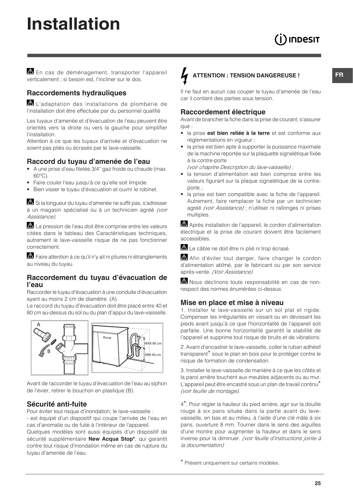60°C). • Faire couler l'eau jusqu'à ce qu'elle soit limpide. 80 cm au-dessus du sol ou du plan d’appui du lave-vaisselle.