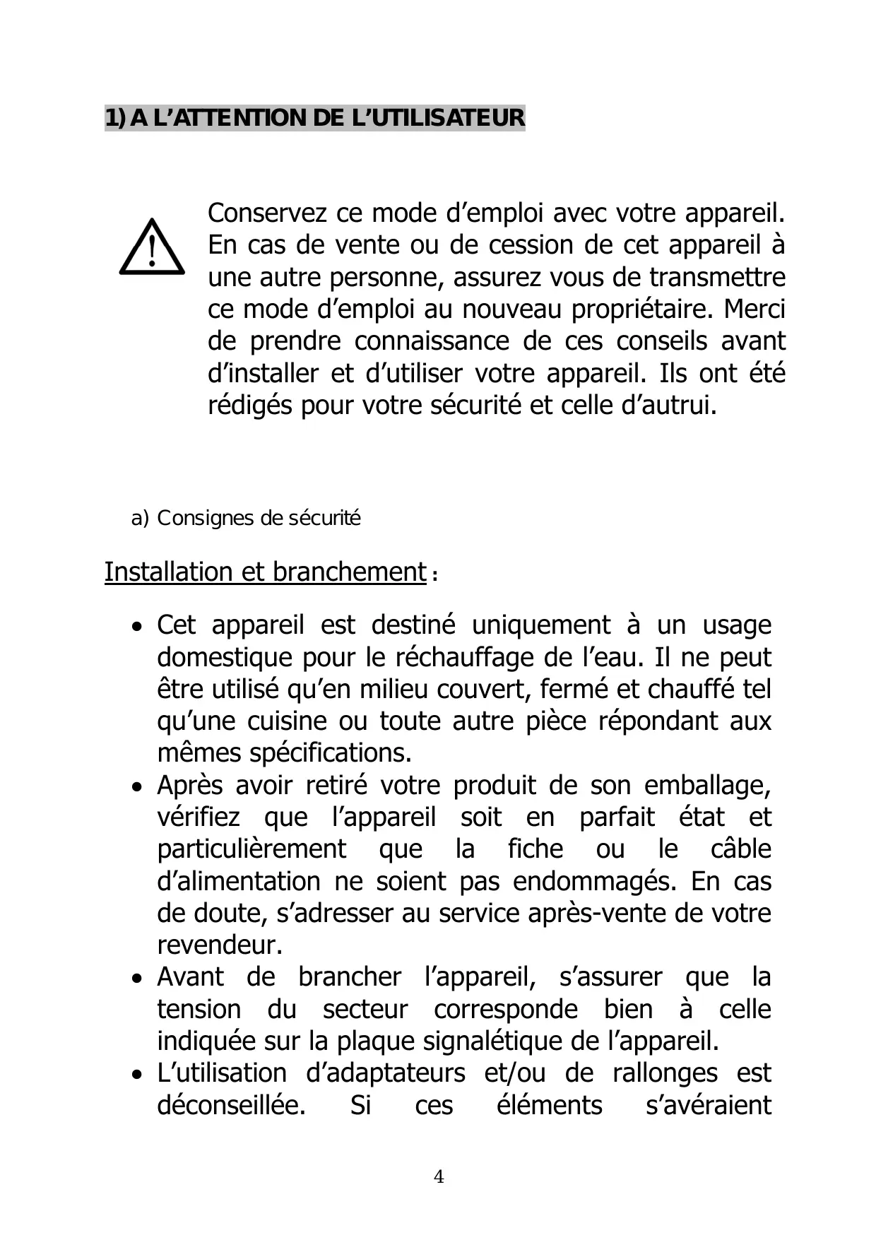 1) À L'ATTENTION DE L'UTILISATEUR 4