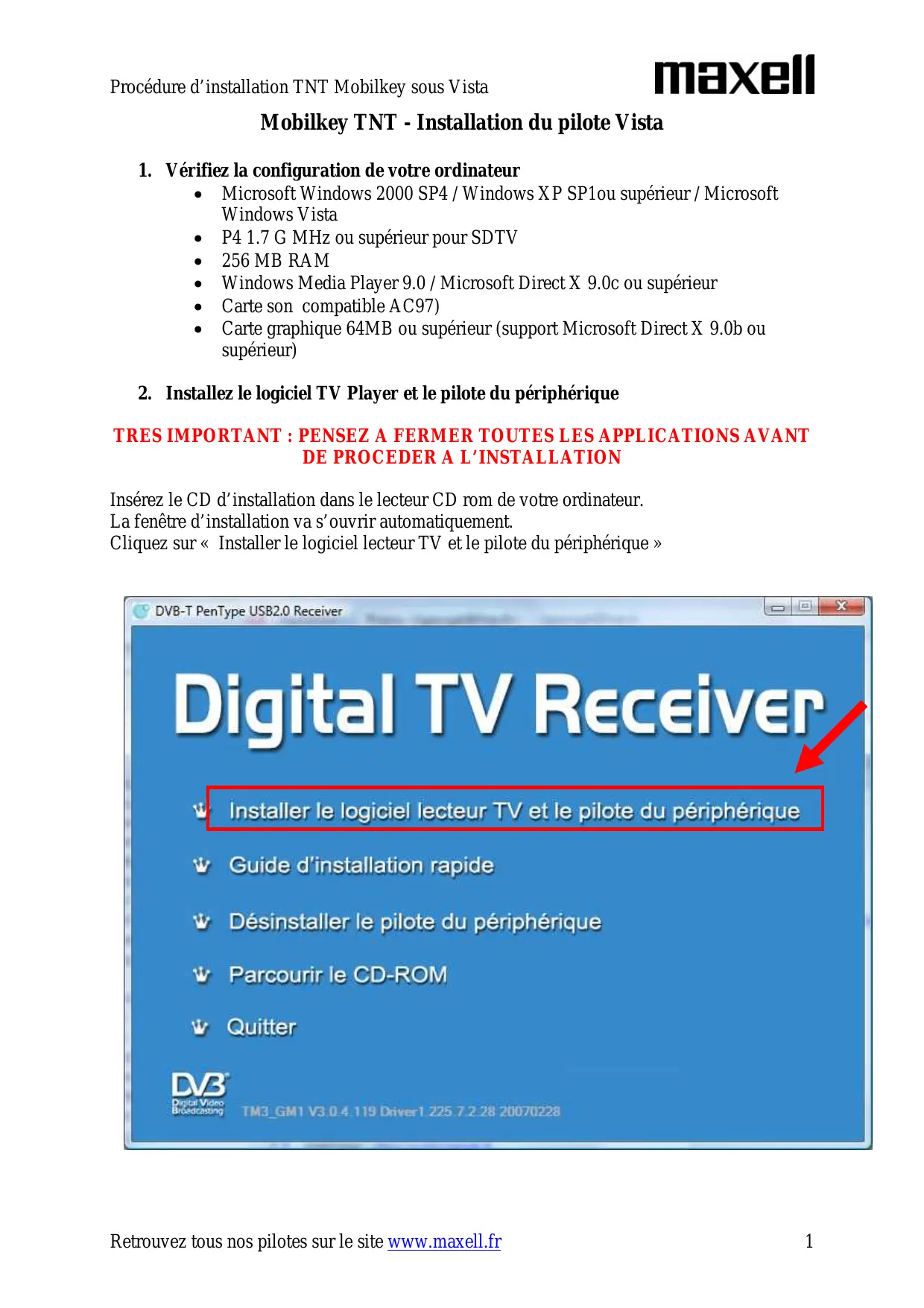 2. Installé le logiciel TV Player et le pilote du péripérisque