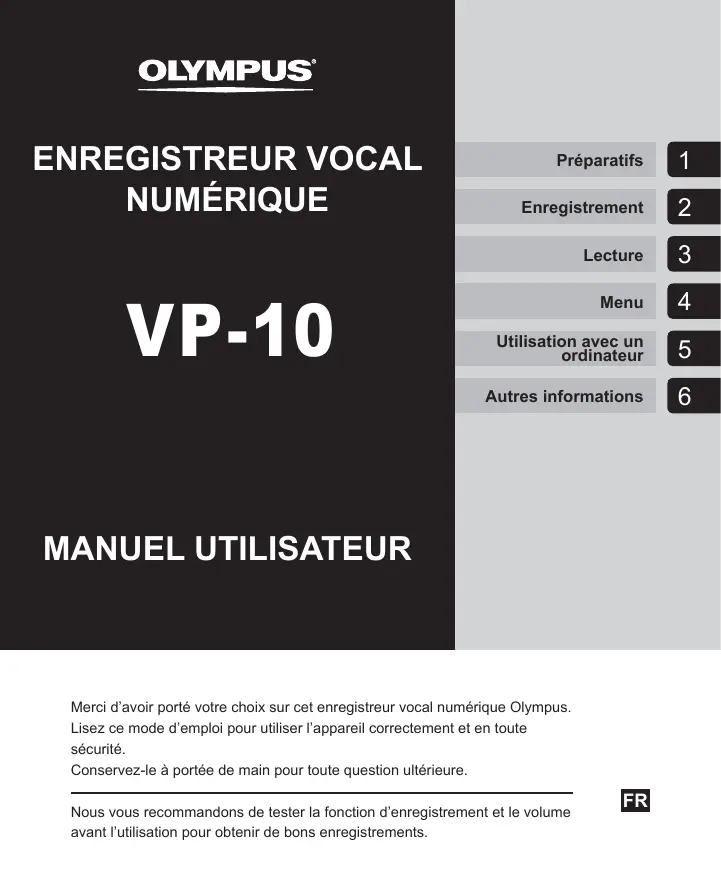 Nous vous recommandons de tester la fonction d’enregistrement et le volume avant l’utilisation pour obtenir de bons enregistrements.