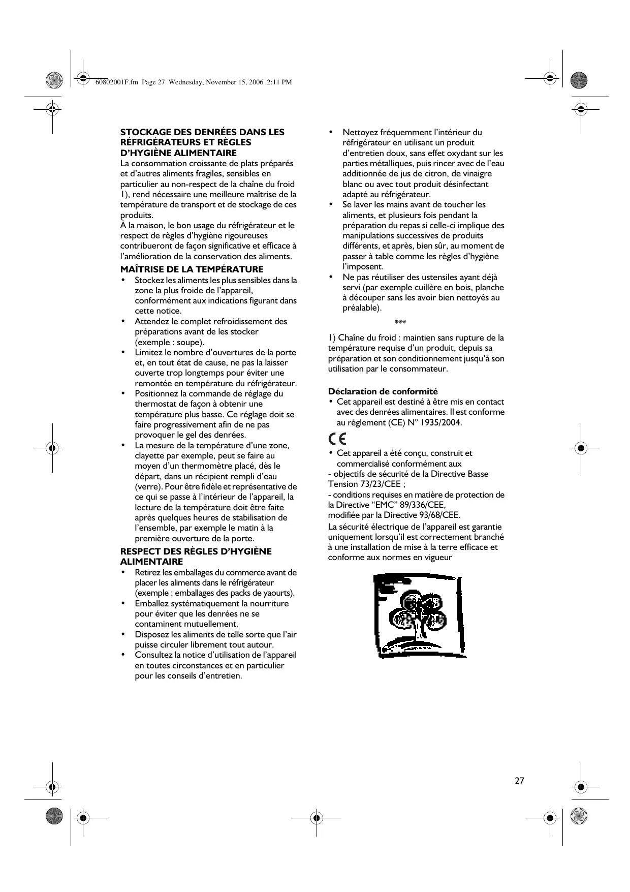 Pour utiliser au moyen votre apparéil, nous vous invitons à生存 attentivement les instructions dans lesquilles vous trouvrez la description de cette apparéil et des conseils utiles pour la conservation des-aliments.