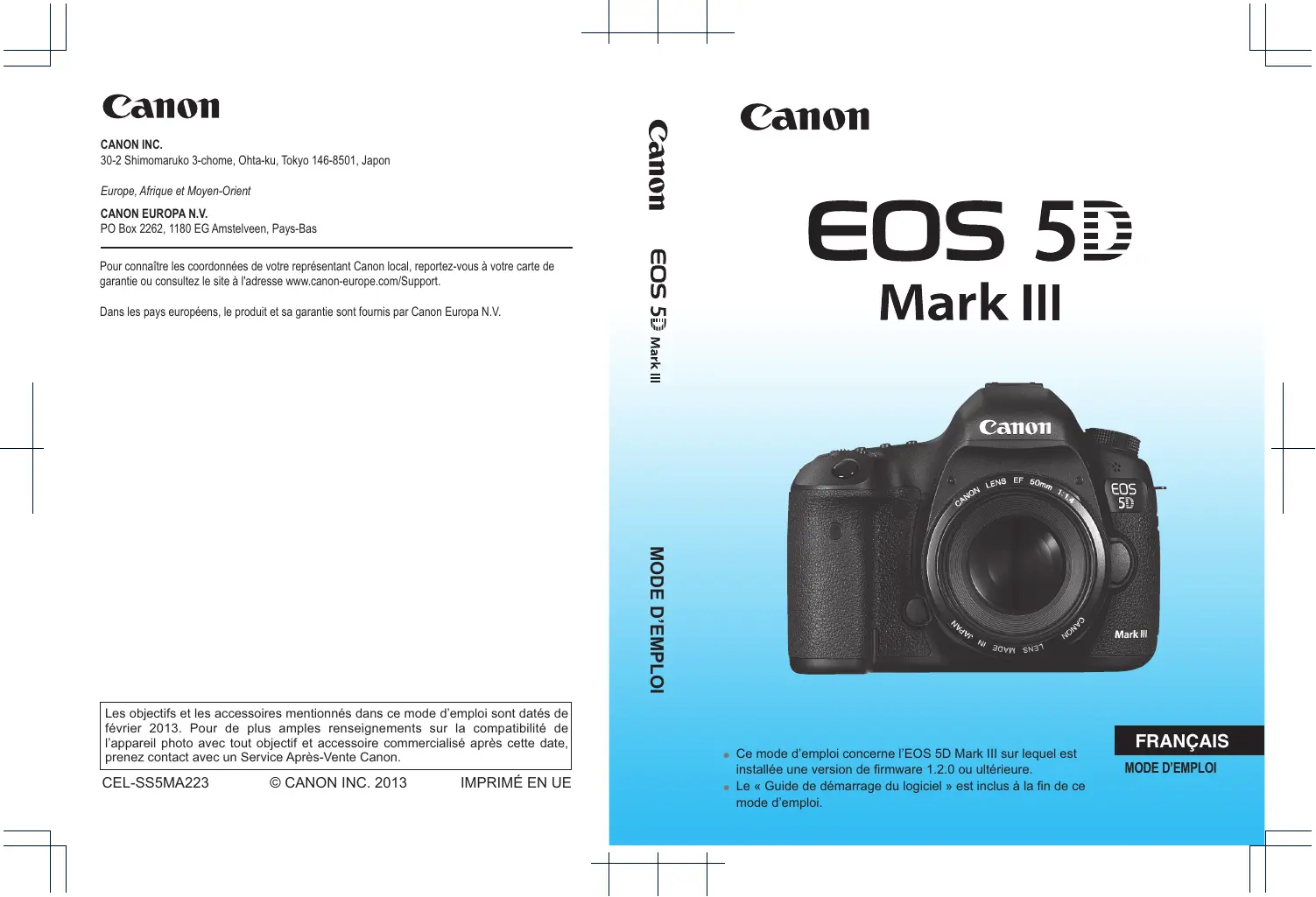 MODE D’EMPLOI Les objectifs et les accessoires mentionnés dans ce mode d’emploi sont datés de février 2013. Pour de plus amples renseignements sur la compatibilité de l’appareil photo avec tout objectif et accessoire commercialisé après cette date, prenez contact avec un Service Après-Vente Canon.