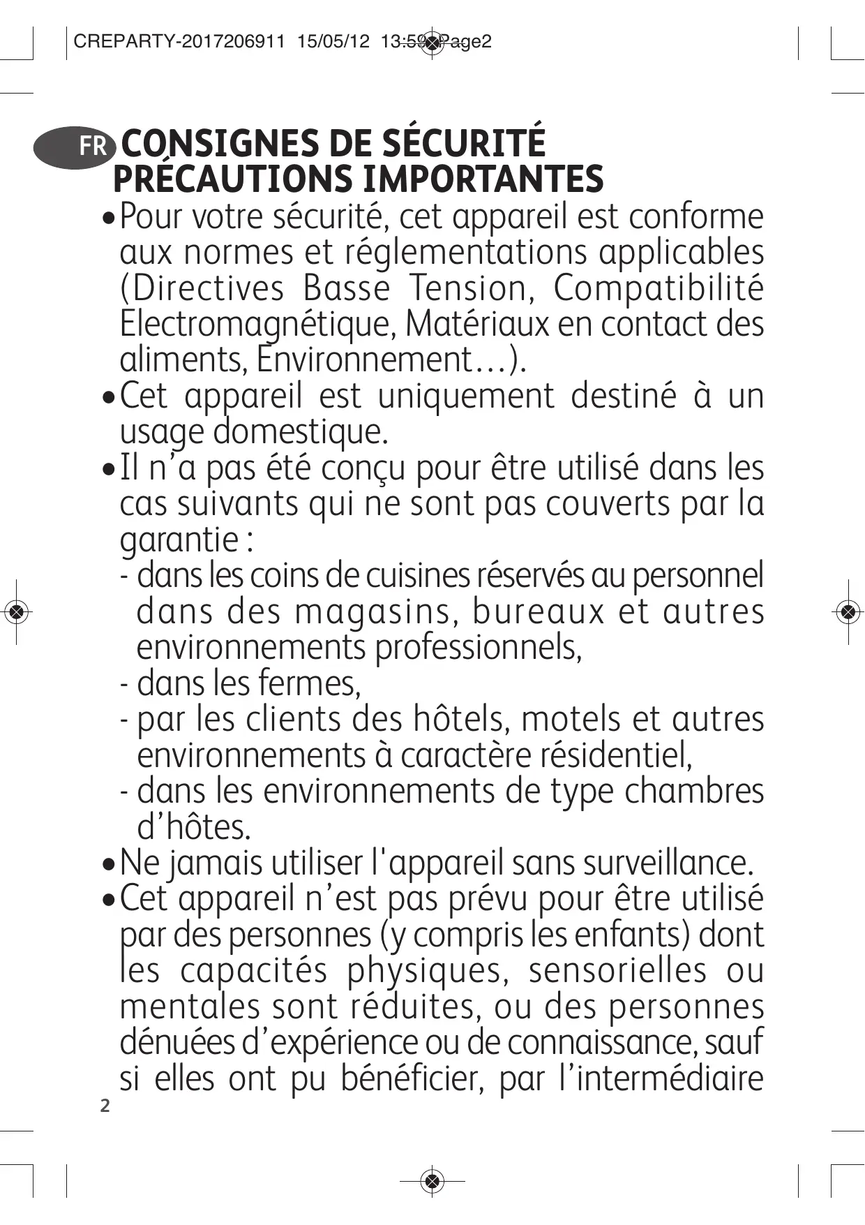 - Cet apparéil est uniquement destiné à un usage domestique.