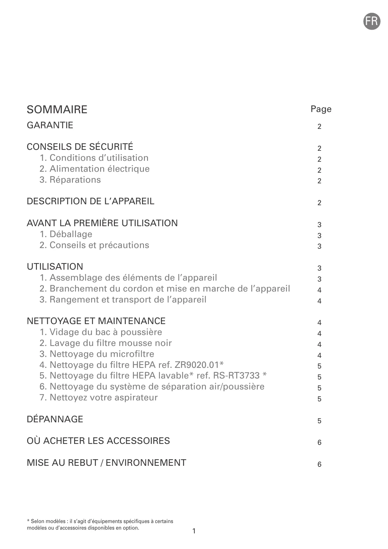 Le filtre HEPA lavable* ref RS-RT3733 est disponible chez votre revendeur ou dans les Centres Service Agréés.