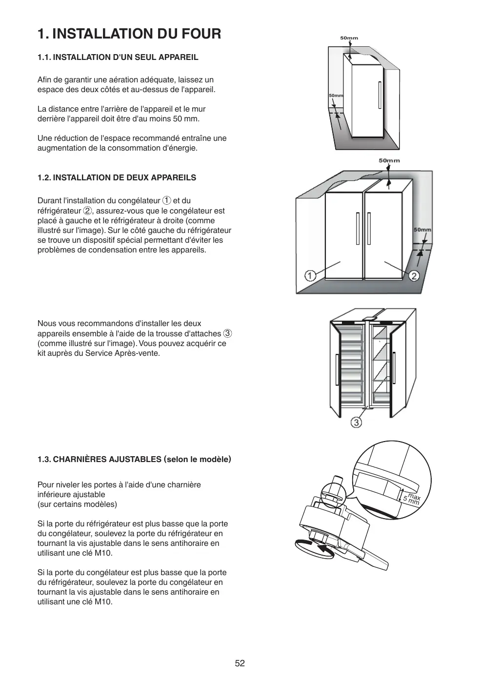 1.3. CHARNIÈRES AJUSTABLES (selon le modèle)