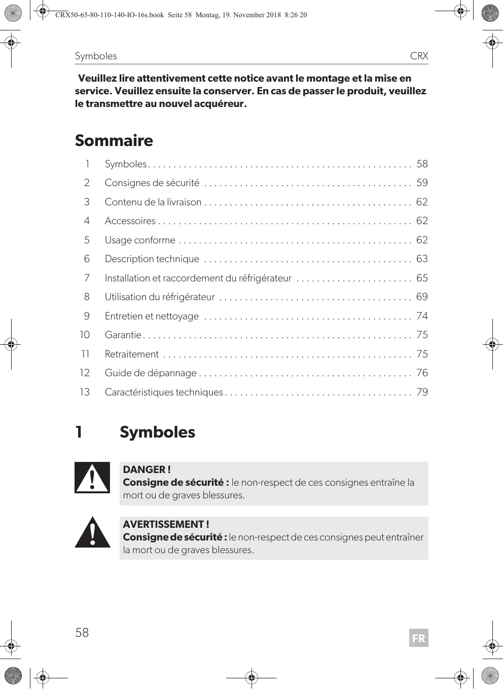 Instructions de montage et de service . . . . . . . . . . . . . . . . . . . . . . . . .58