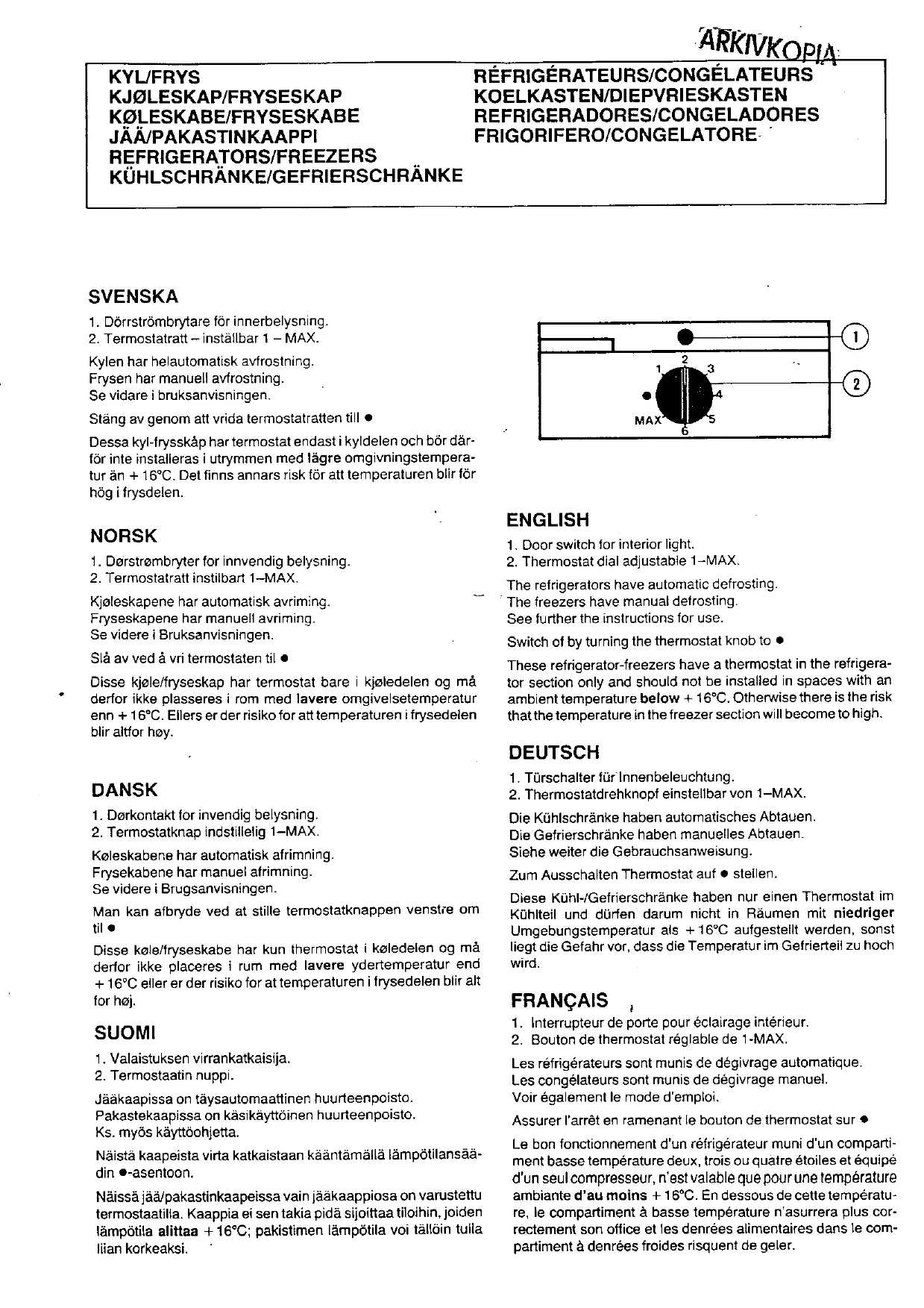 EFK350 - Réfrigérateur-congélateur ELEKTRA - Notice d'utilisation et mode d'emploi gratuit