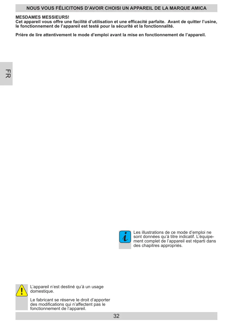 Les illustrations de ce mode d'emploi ne sont données qu'a titre indicatif. L'équipe-ment complet de l'appareil est réparti dans des chapitres appropriés.