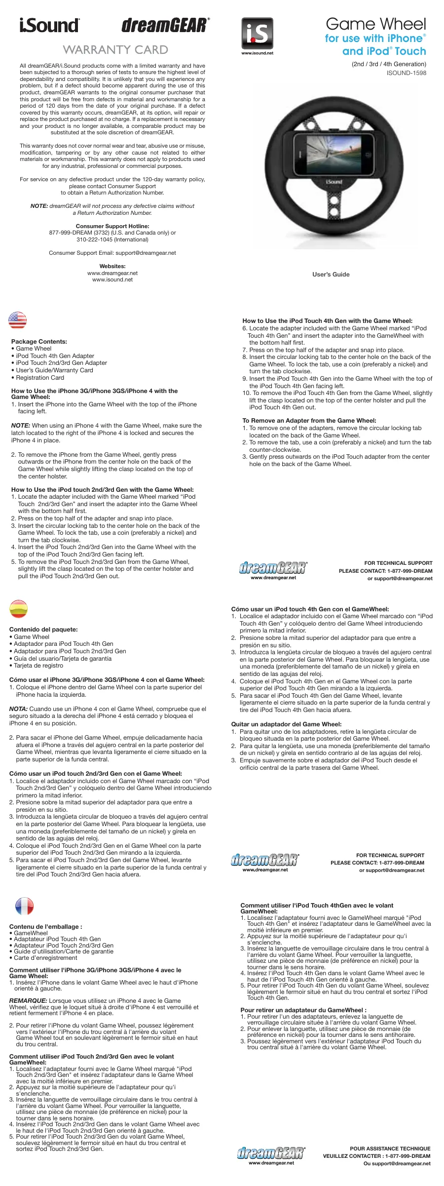 Retrouvez gratuitement la notice de l'appareil GAME WHEEL ISOUND au format PDF.