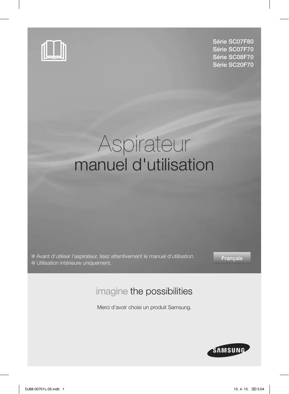 Retrouvez gratuitement la notice de l'appareil VC07F70HNUR/EF - VC07F70HUYC/EF SAMSUNG au format PDF.