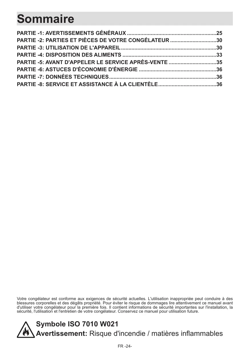 Avertissement: Risque d'incendie / matières inflammables FR -24-