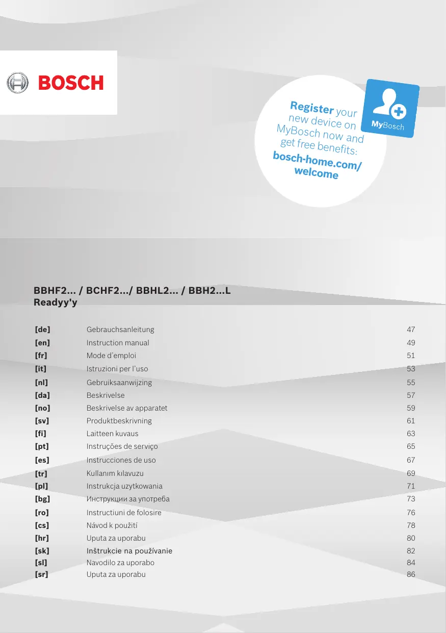 Retrouvez gratuitement la notice de l'appareil BBHF2PARQ BOSCH au format PDF.