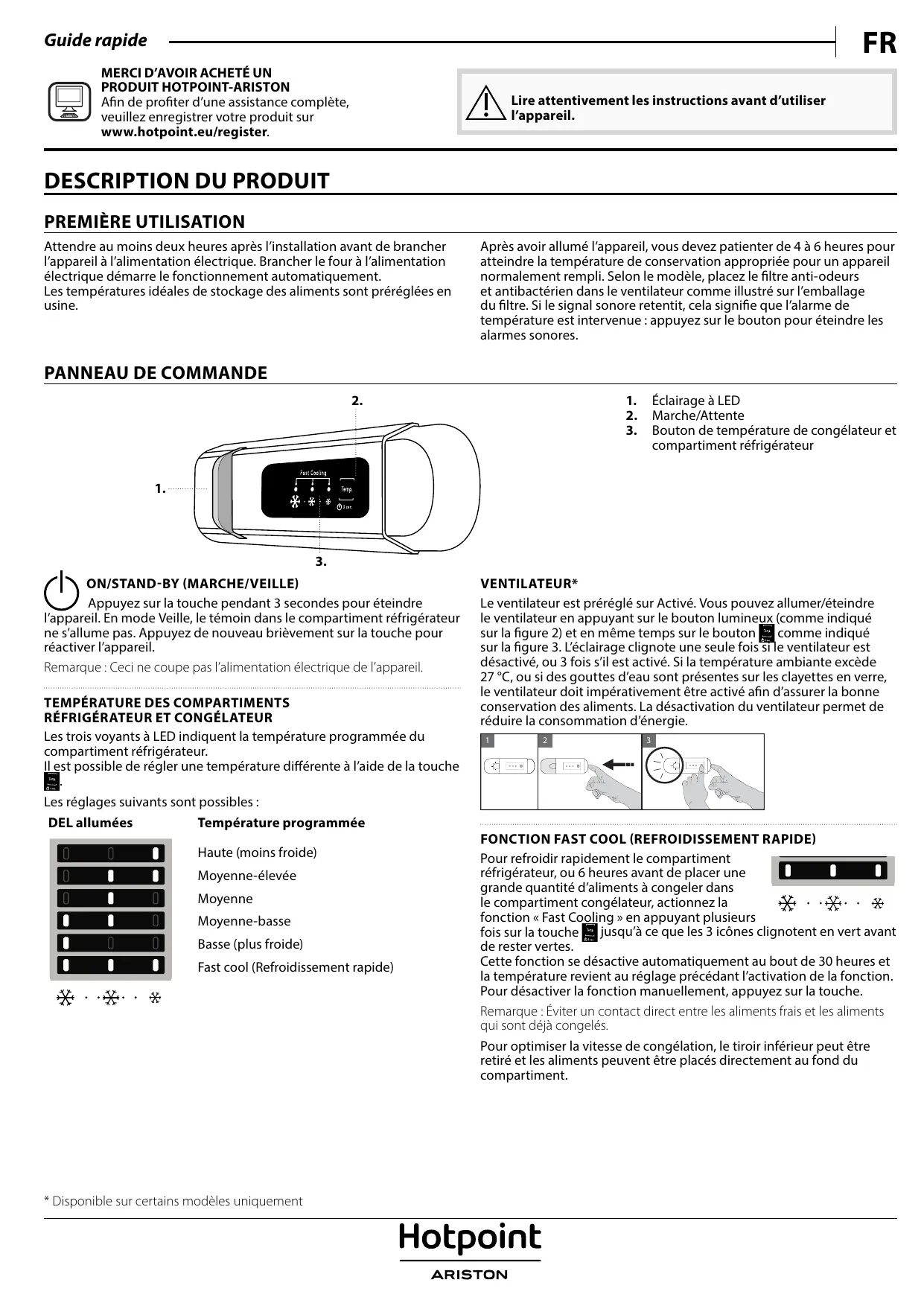 FR Guide rapide MERCI D’AVOIR ACHETÉ UN PRODUIT HOTPOINT-ARISTON Afin de profiter d’une assistance complète, veuillez enregistrer votre produit sur www.hotpoint.eu/register.