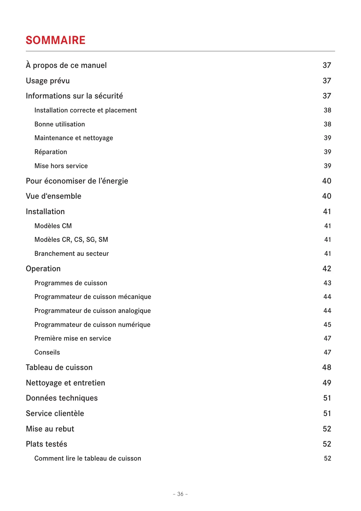 Remarque : Les indications figurant dans le tableau correspondent à des essais de cuisson effectués par une équipe de cuisiniers professionnels. Elles sont données à titre indicatif et peuvent être modifiées selon vos goûts.