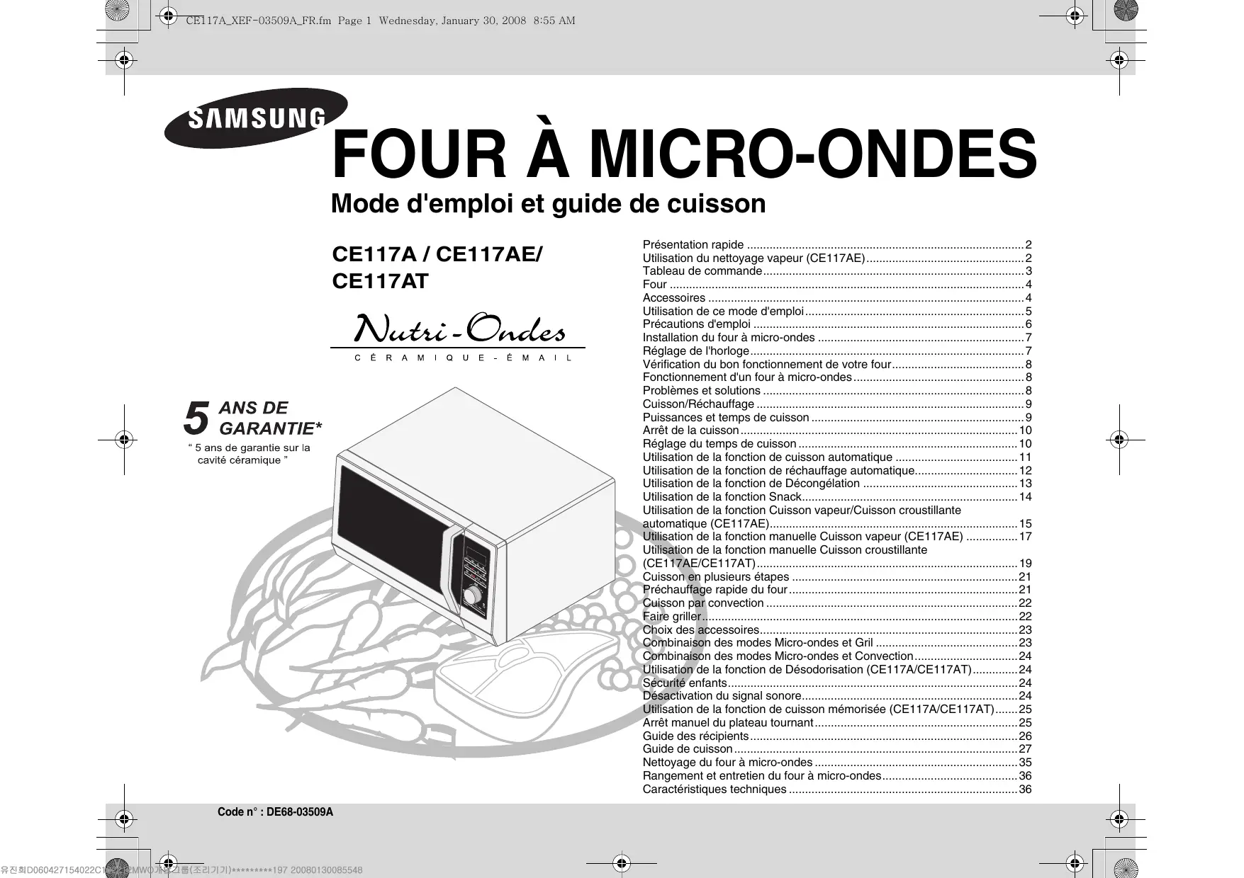 CE117AE-XEF - Micro-ondes SAMSUNG - Notice d'utilisation et mode d'emploi gratuit