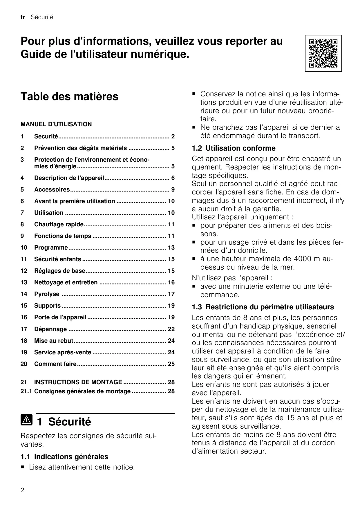 Sécurité Pour plus d'informations, veuillez vous reporter au Guide de l'utilisateur numérique. Table des matières MANUEL D'UTILISATION