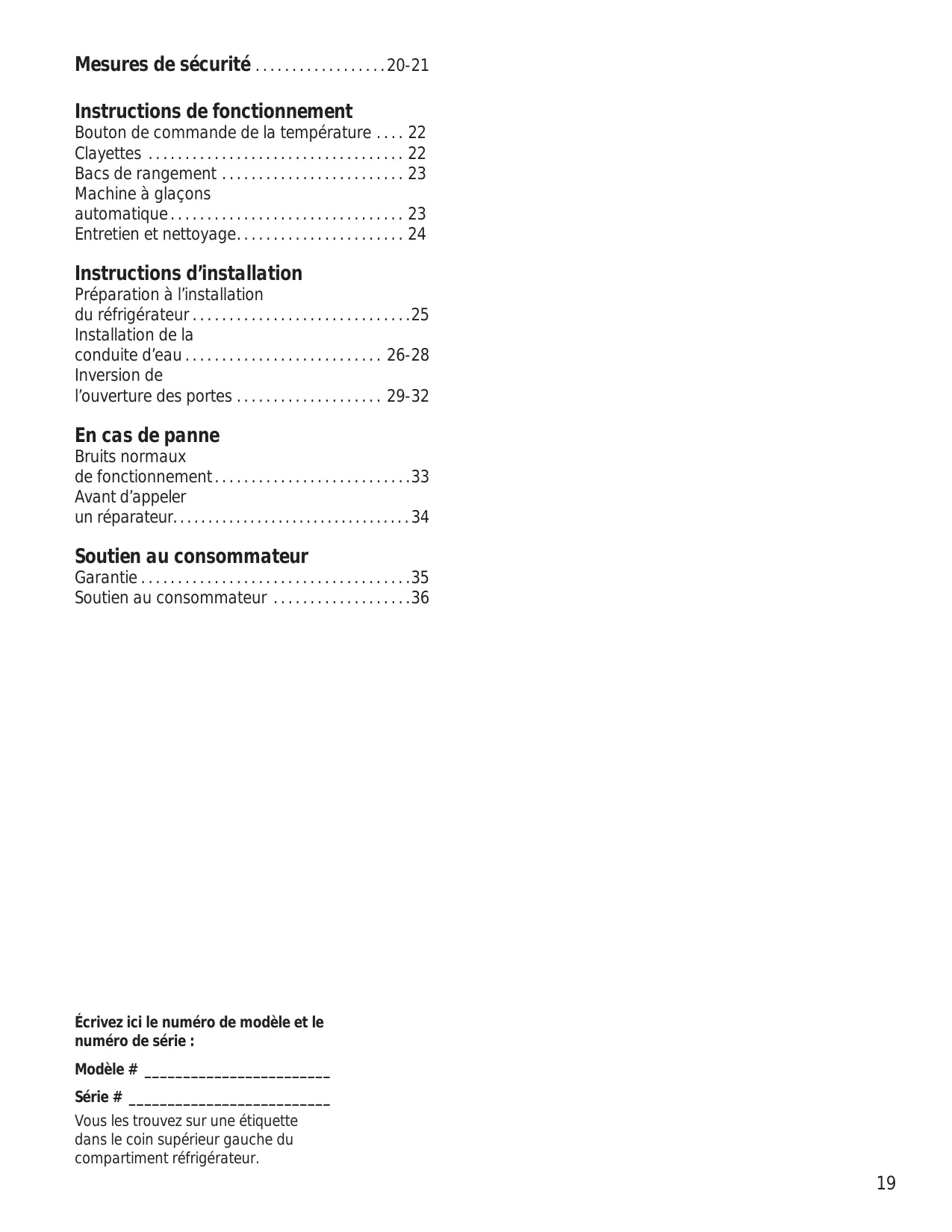 Modèle # ________________________ Série # __________________________ Vous les trouvez sur une étiquette dans le coin supérieur gauche du compartiment réfrigérateur.