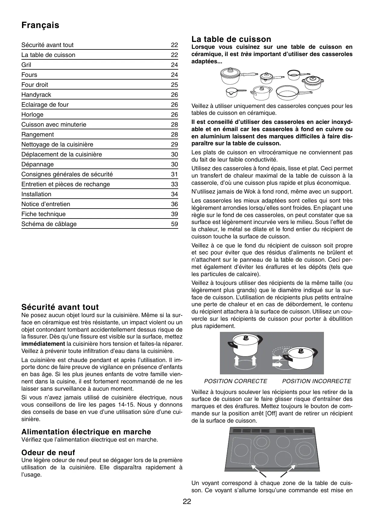 Veillez à utiliser uniquement des casseroles conçues pour les tables de cuisson en céramique.