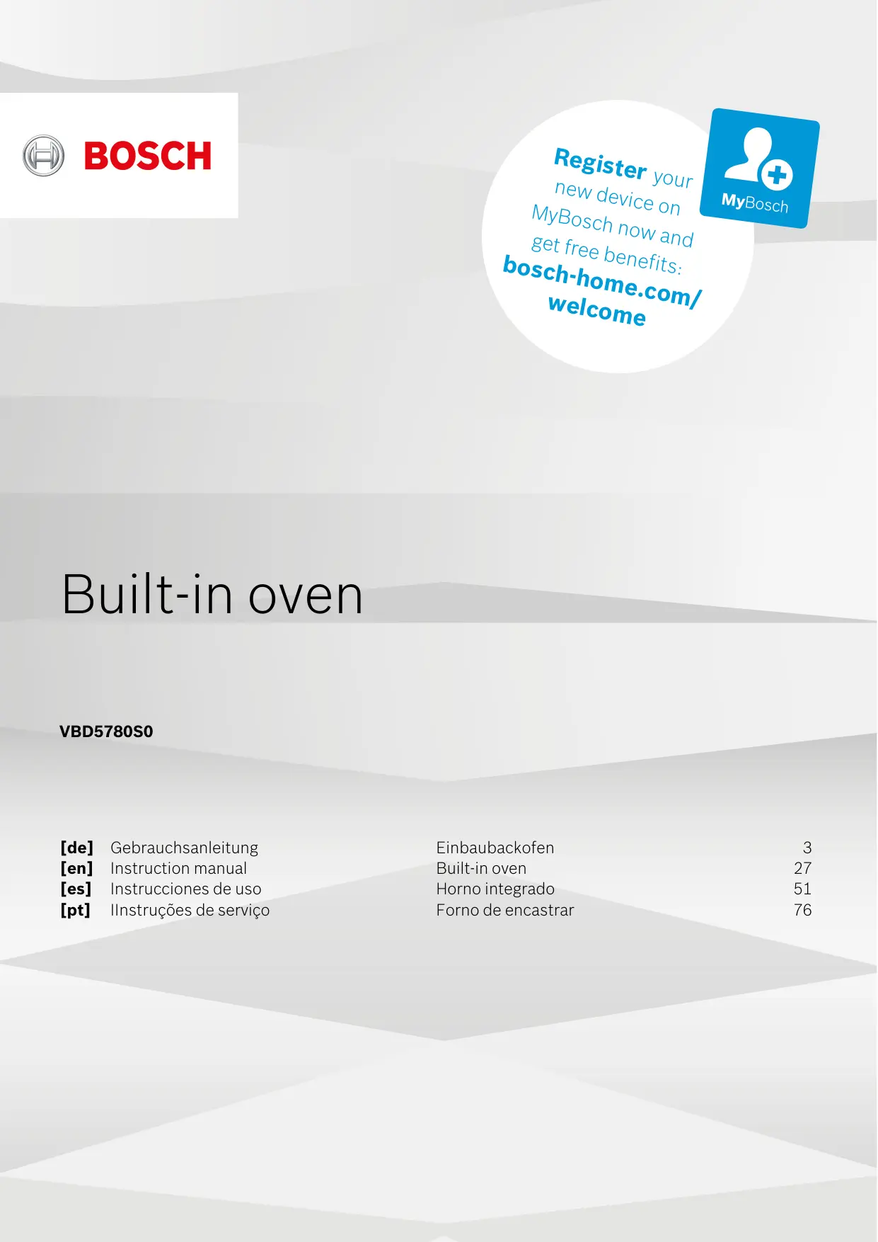 Retrouvez gratuitement la notice de l'appareil VBD5780S0 BOSCH au format PDF.