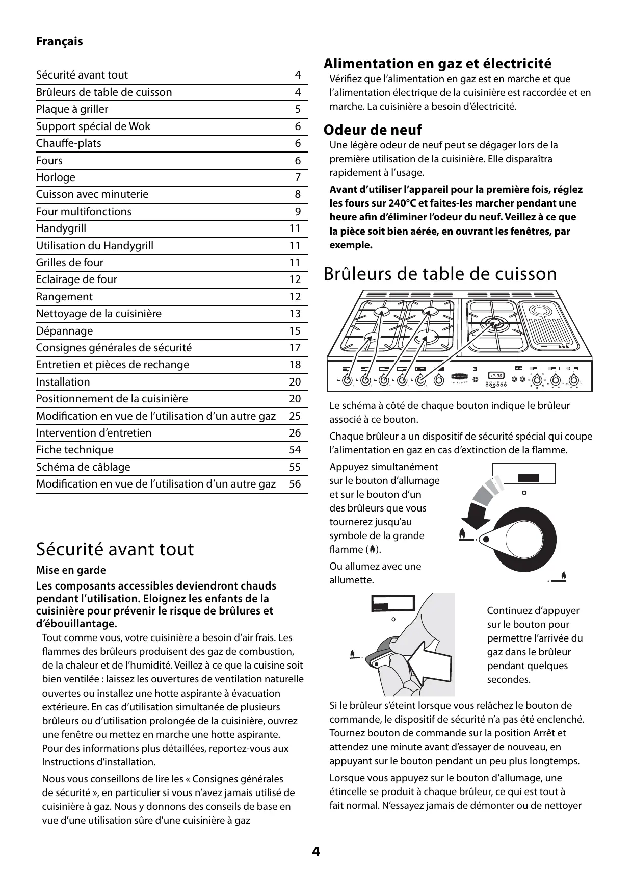 Nous vous conseillons de dire les « Consignes générales de sécurité», en particulier si vous n'avez jamais utilisé de cusinière à gaz. Nous y donnons des conseils de base en vue d'une'utilisation sure d'une cusinière à gaz