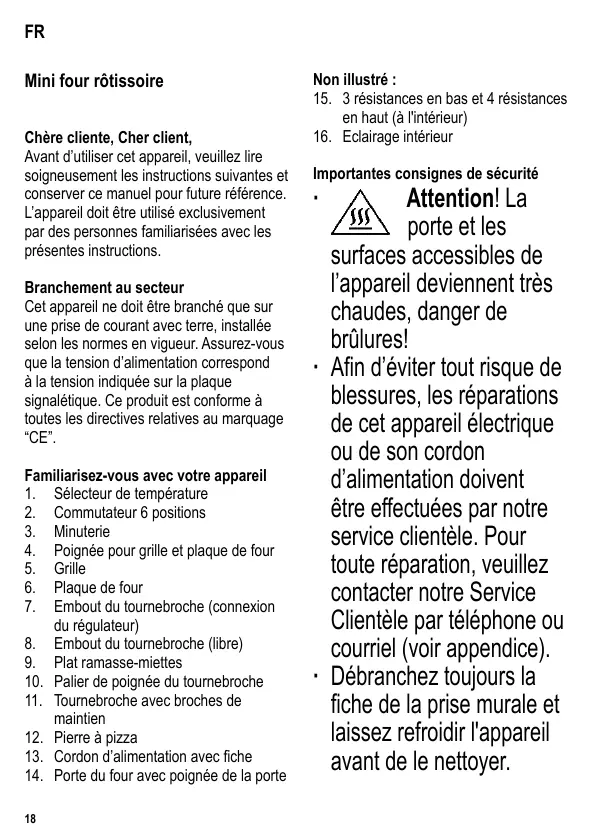 | Accessoires inclus | Grille, lèchefrite, broche tournante |