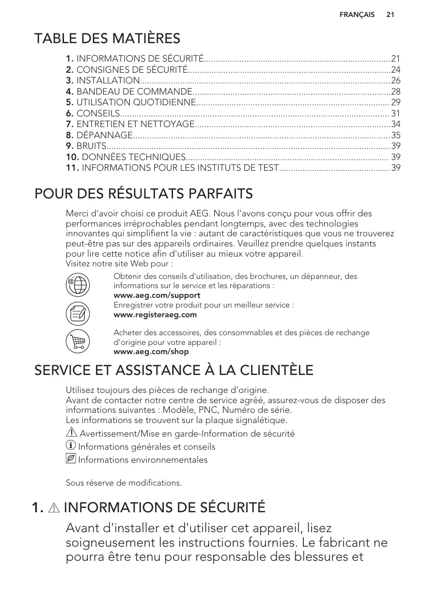 Merci d'avoir choisi ce produit AEG. Nous l'avons conçu pour vous offrir des performances irréprochables pendant longtemps, avec des technologies innovantes qui simplifier la vie : autant de caractéristiques que vous ne trouvrez peut-être pas sur des appareils ordinaires. Veuillez prendre quelques instantes pour dire cette notice afin d'utiliser au moins votre apparéil.