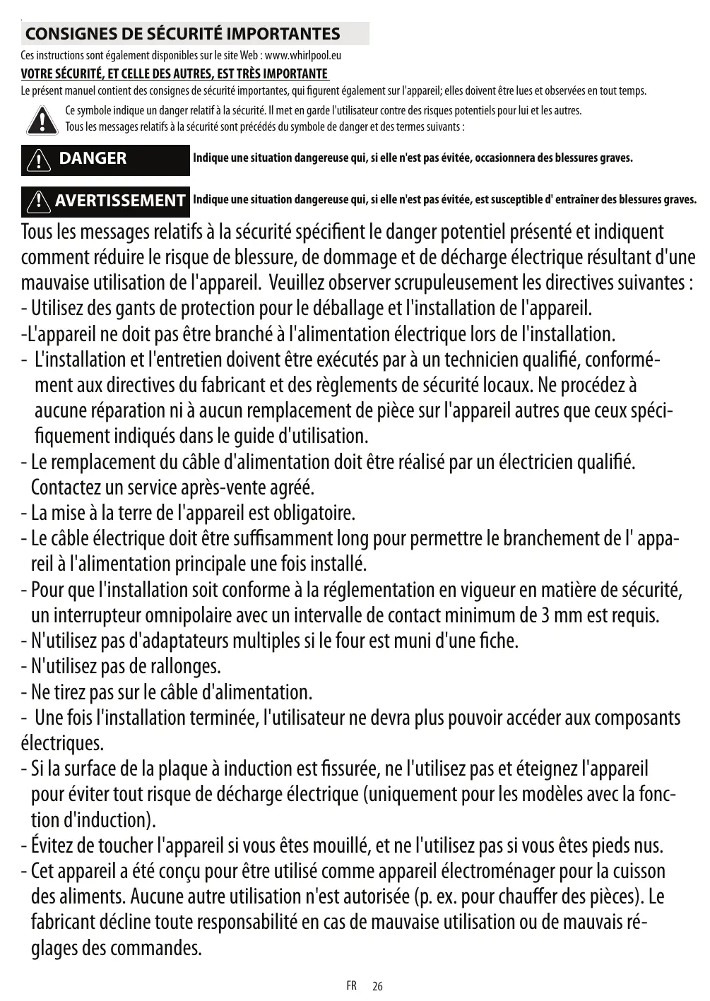 CONSIGNES DE SÉCURITÉ IMPORTANTES Ces instructions sont également disponibles sur le site Web : www.whirlpool.eu