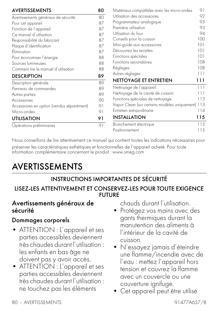 Retrouvez gratuitement la notice de l'appareil SO6302M2X SMEG au format PDF.
