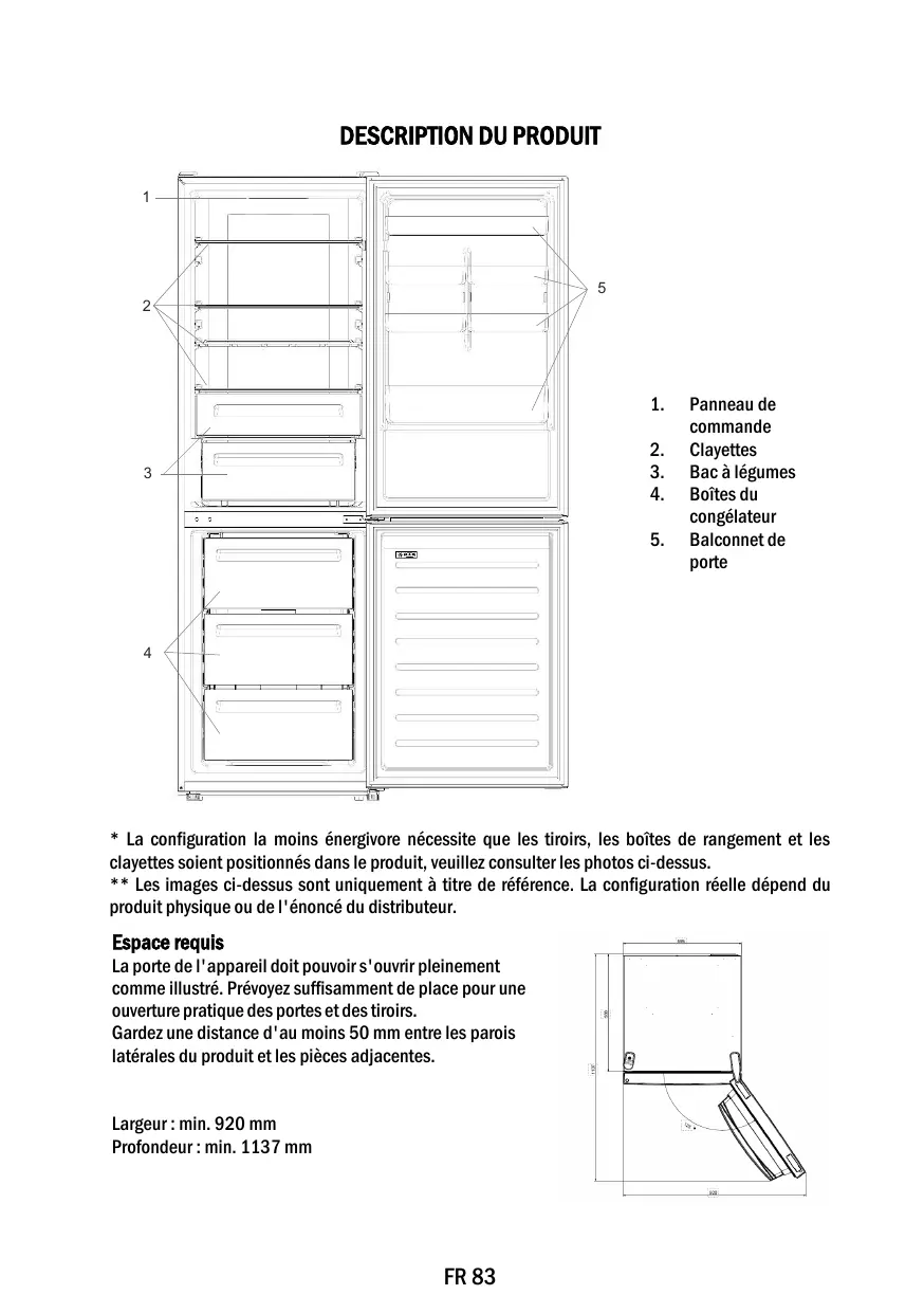 * La configuration la moins énergivore nécessite que les tiroirs, les boîtes de rangement et les clayettes soient positionnés dans le produit, veuillez consulter les photos ci-dessus.