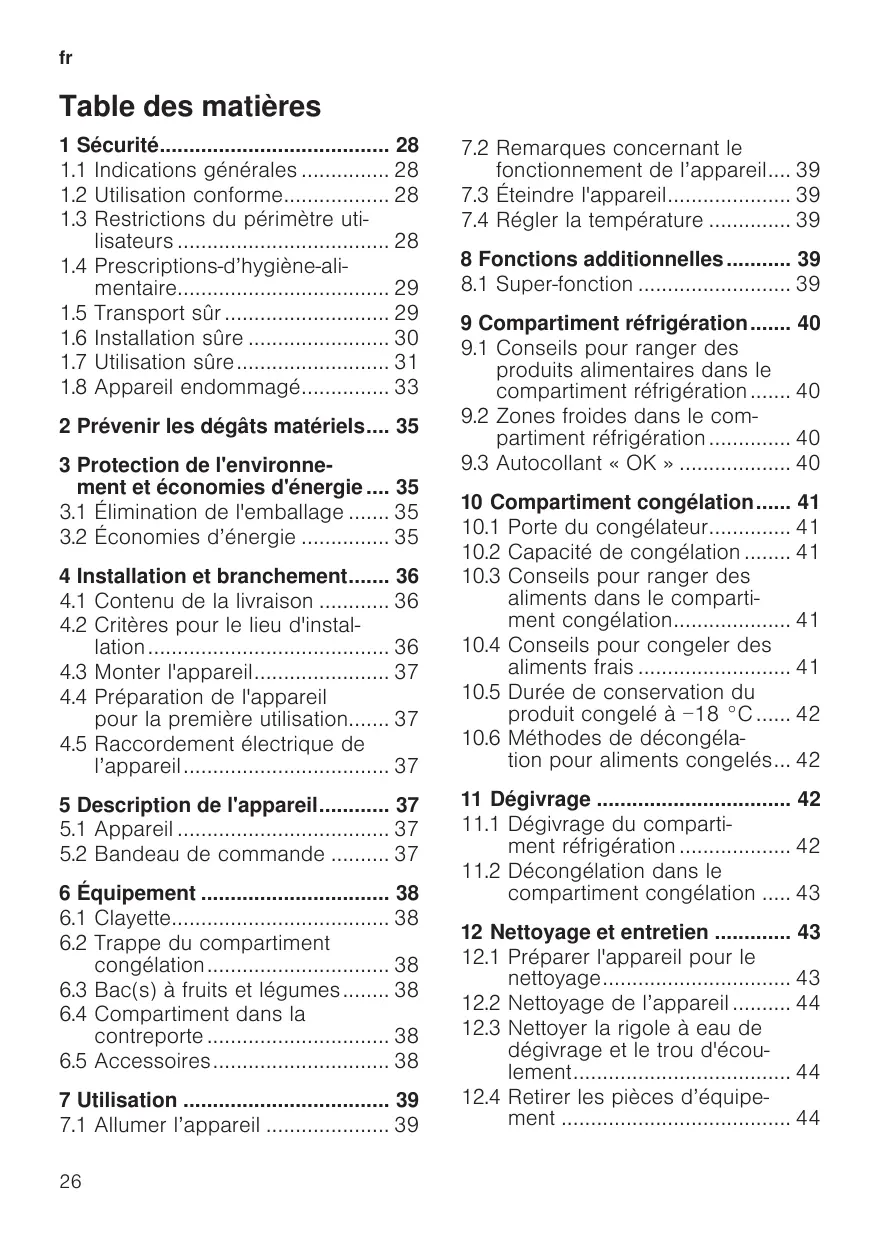 compartiment congélation ..... 43 12 Nettoyage et entretien ............. 43