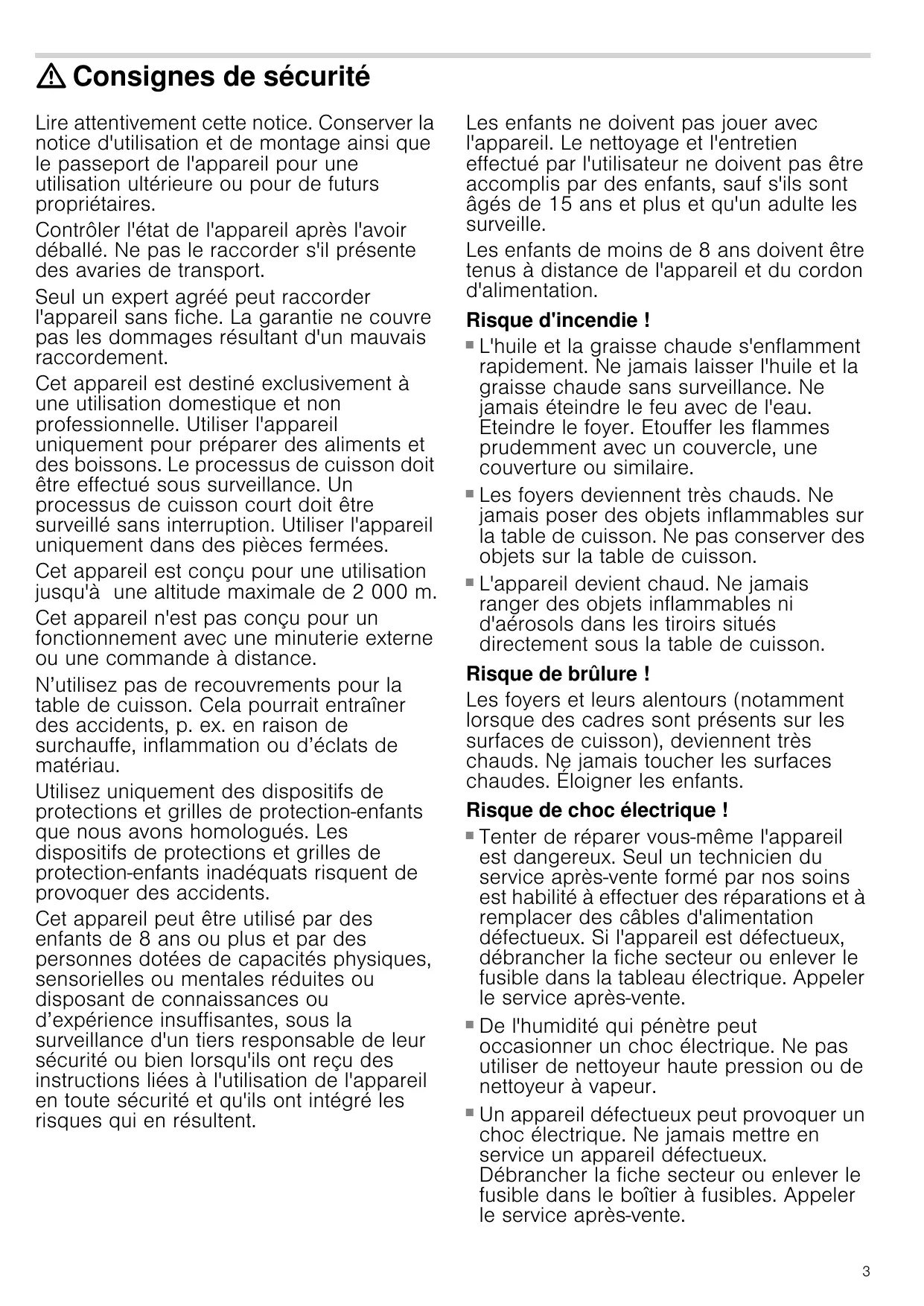 Les foyers et leurs alentours (notamment lorsque des cadres sont présents sur les surfaces de cuisson), deviennent très chauds. Ne jamais toucher les surfaces chaudes. Eloigner les enfants.