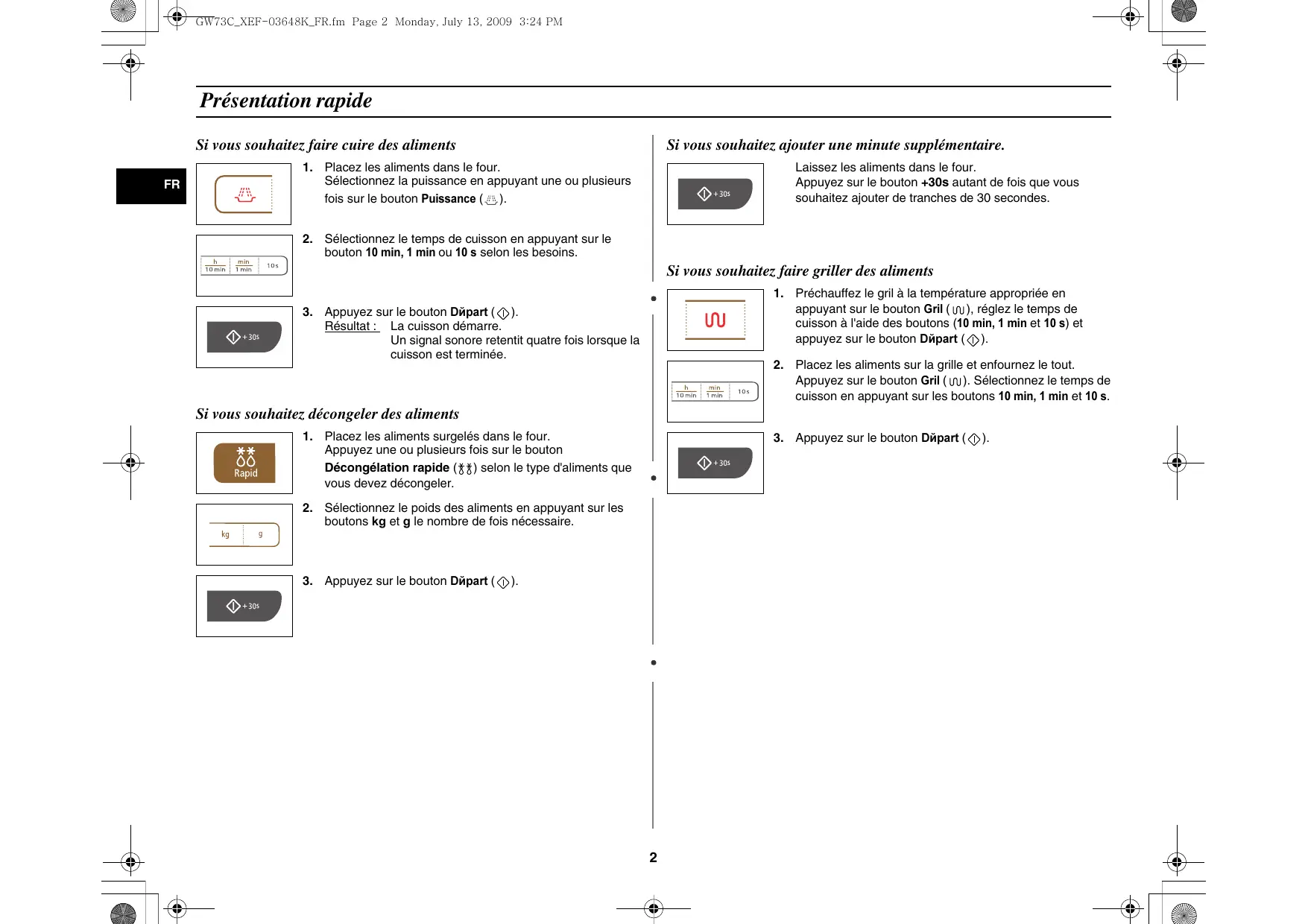 - Prolonger le temps de cuisson Au début du mode d'emploi, vous trouverez une illustration du four, et plus particulièrement du tableau de commande, pour vous permettre de mieux localiser les boutons. CONSIGNES DE SÉCURITÉ IMPORTANTES.