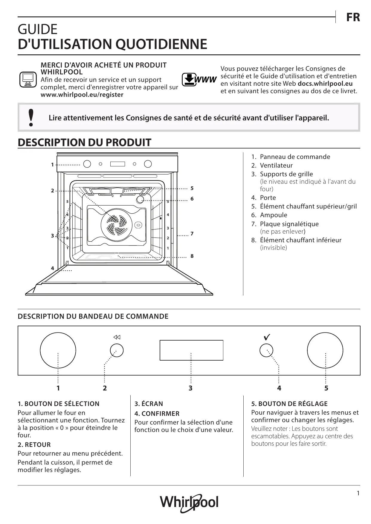 Vous pouvez télécharger les Consignes de sécurité et le Guide d'utilisation et d'entretien en visitant notre site Web docs.whirlpool.eu et en suivant les consignes au dos de ce livret.