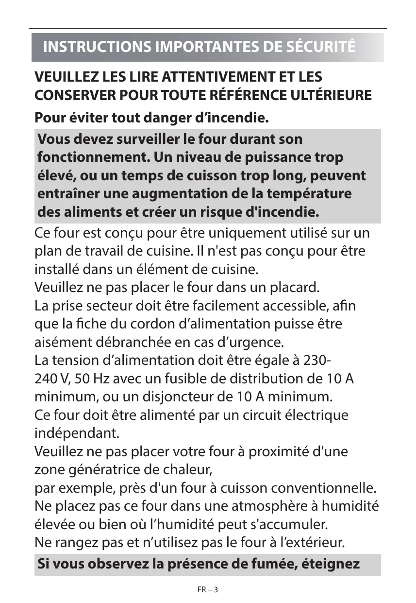 surveillez le four pour prévenir tout risque d’ignition. REMARQUE : Ne laissez pas votre four sans surveillance pendant l'utilisation. FR – 24