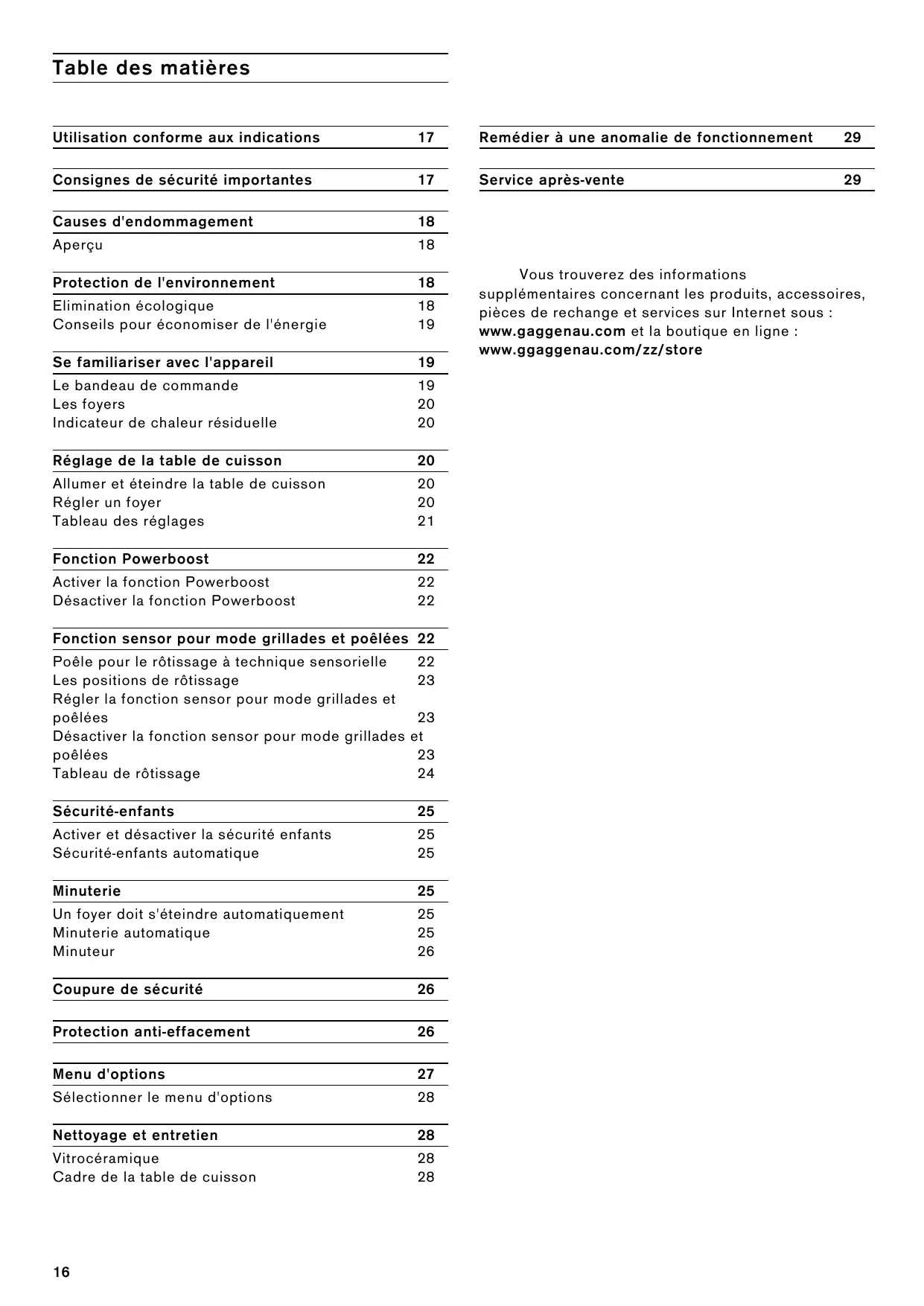 Vous trouvez des informations supplémentaires concernant les produits, accessoires, pièces de rechange et services sur Internet sous: www.gaggenau.com et la boutique en ligne: www.ggaggenau.com/zz/store