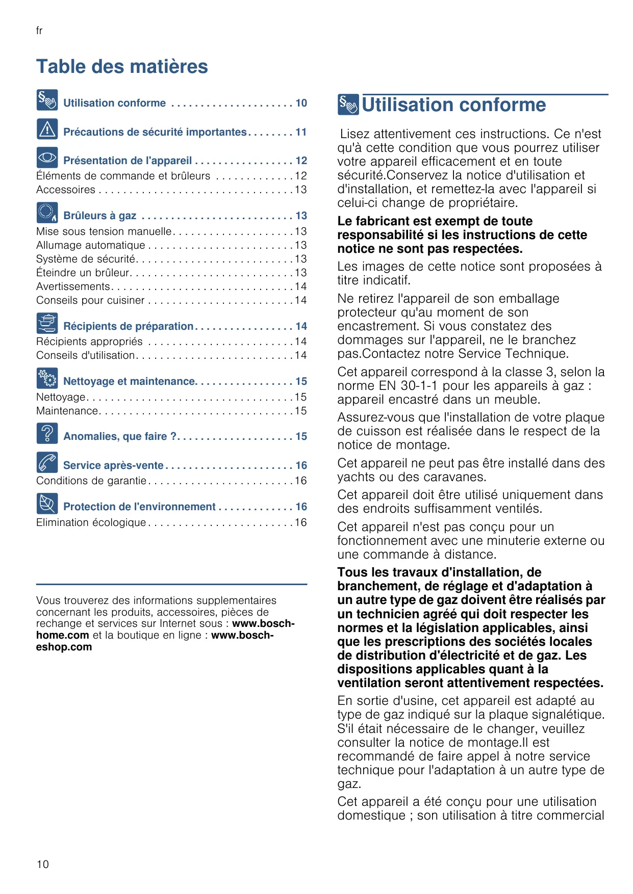 - Table des matières [fr]Not i ce d’ ut i l i sat i onTabl e de cui s on gaz 8 Utilisation conforme p. 10