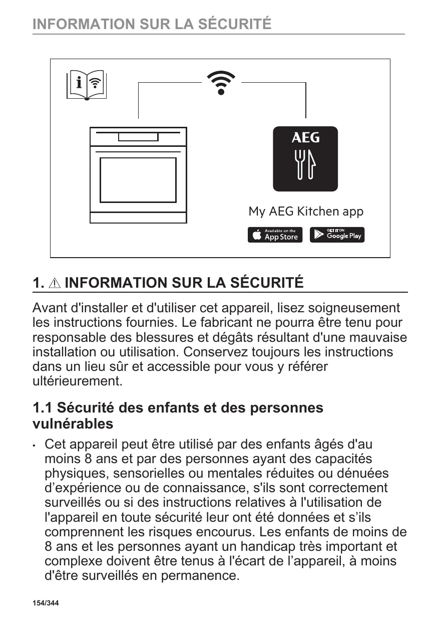 1. INFORMATION SUR LA SÉCURITÉ154 3. DESCRIPTION DE L'APPAREIL162 1.1 Sécurité des enfants et des personnes vulnérables154 1.2 Sécurité générale155 2. CONSIGNES DE SÉCURITÉ157