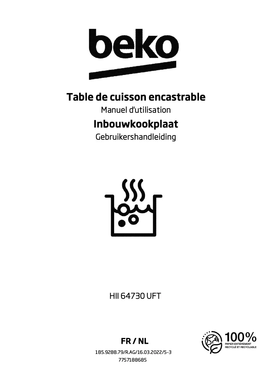 HII 64730 UFT - Plaque de cuisson BEKO - Notice d'utilisation et mode d'emploi gratuit