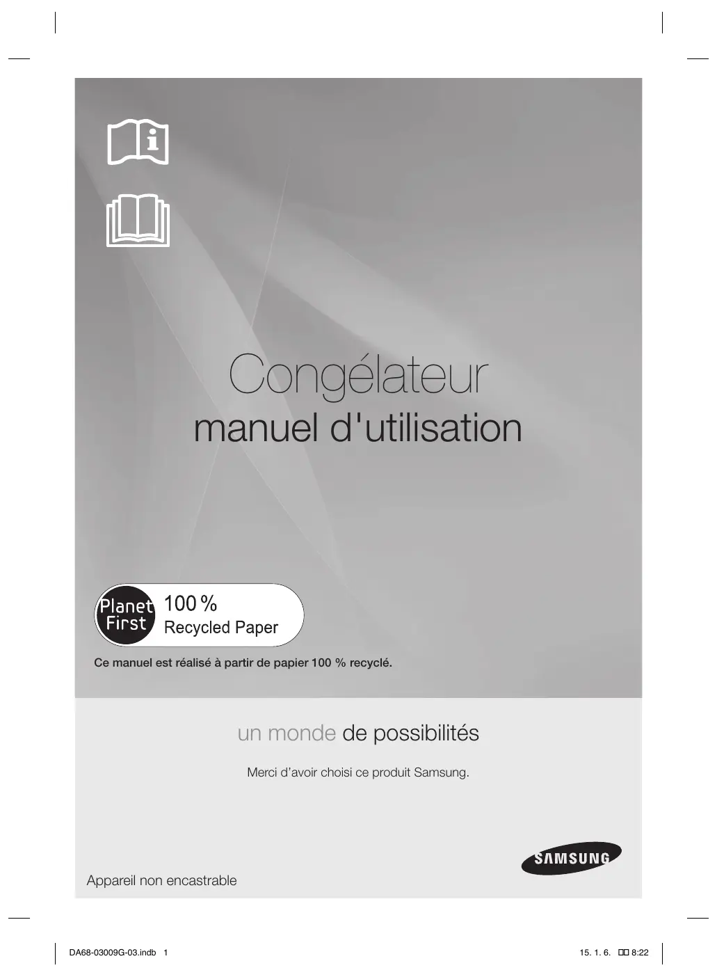 INSTALLATION Nous vous félicitons d’avoir choisi ce Congélateur Samsung. Nous espérons que vous appréciez les fonctionnalités de pointe offertes par ce nouvel appareil.