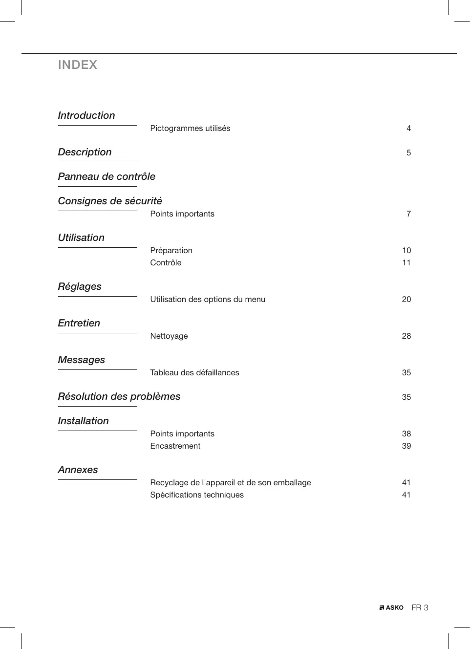 Mode d’emploi FR 3 - FR 41 INDEX Introduction Pictogrammes utilisés Description